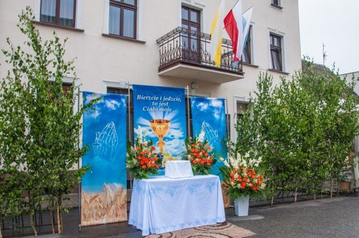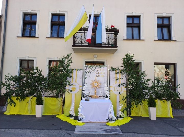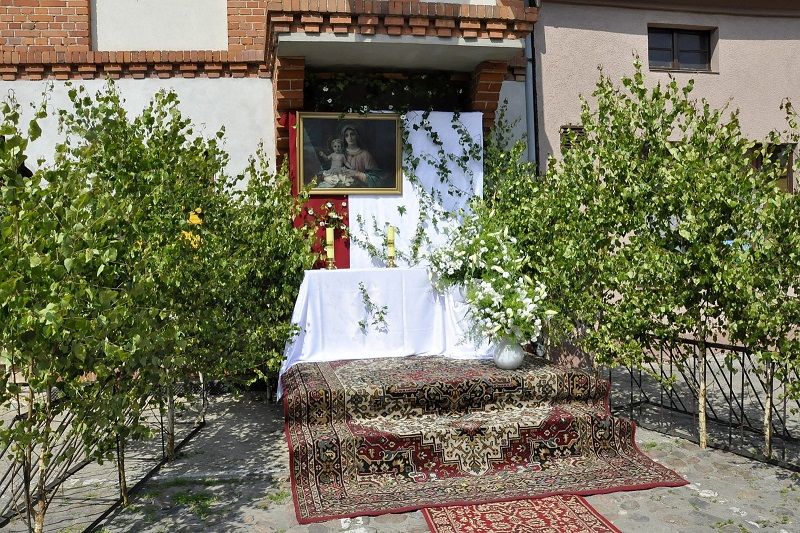OŁTARZE BOŻEGO CIAŁA NA RYCHTALSKIM RYNKU Ołttarz przed domem P. Wróblewskiego ul. Rynek 12.