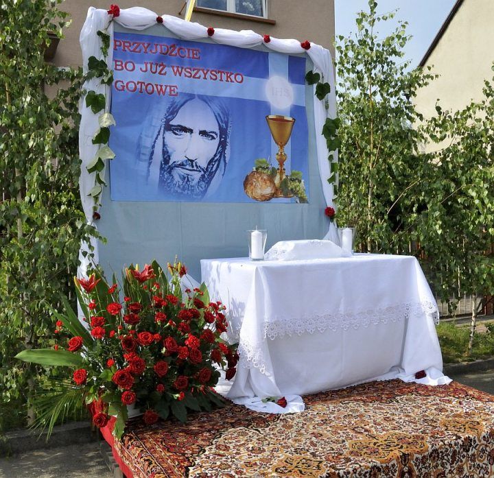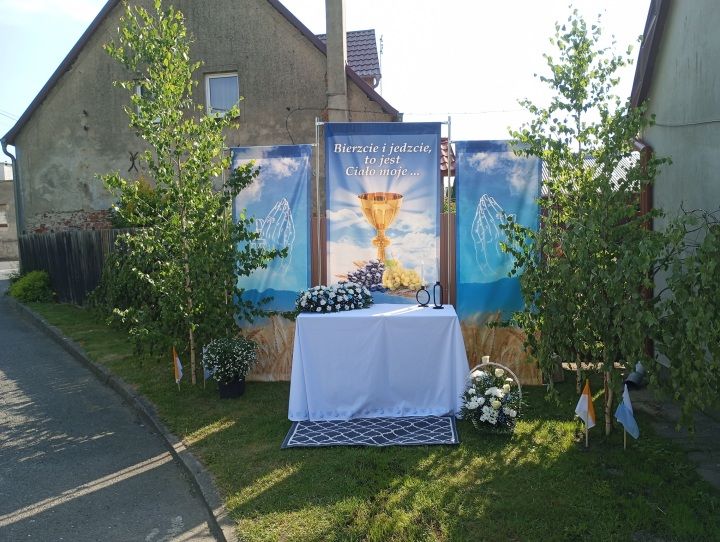 (WSPÓŁCZESNE OŁTARZE PROCESYJNE BOŻEGO CIAŁA W RYCHTALU - Foto: Piotr Szczurek, Daniel Kraśnicki )