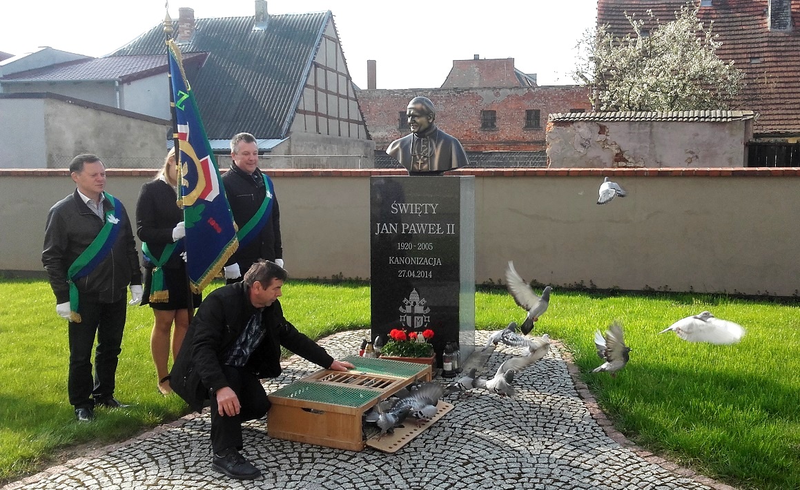 W niedzielę 1 maja 2016r. o godzinie 8.00 w kościele w Rychtalu była sprawowana Msza Święta z udziałem hodowców gołębi pocztowych. Modliliśmy się o błogosławieństwo w rozpoczynającym się nowym sezonie lotów sportowych. Po zakończeniu uroczystości hodowcy udali się pod pomnik św. Jana Pawła II, by uczcić 5 rocznicę jego kanonizacji.