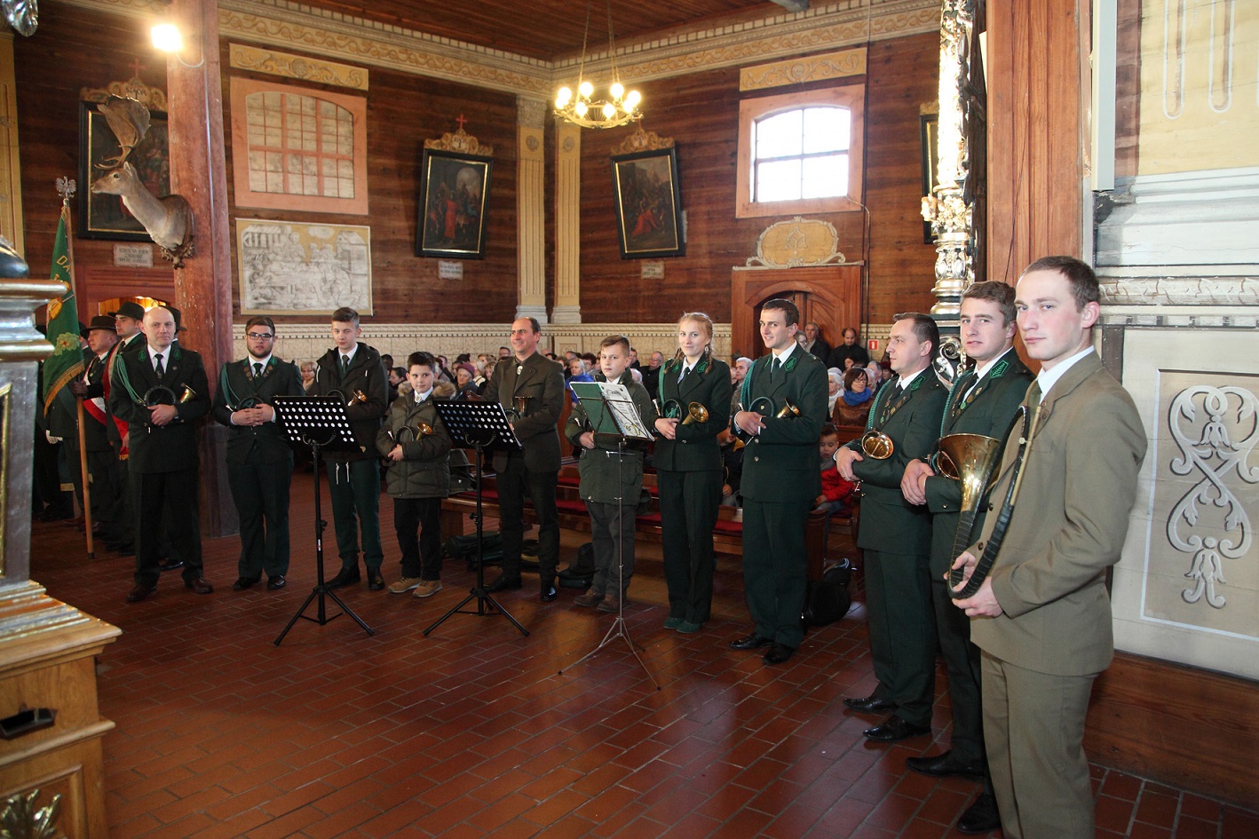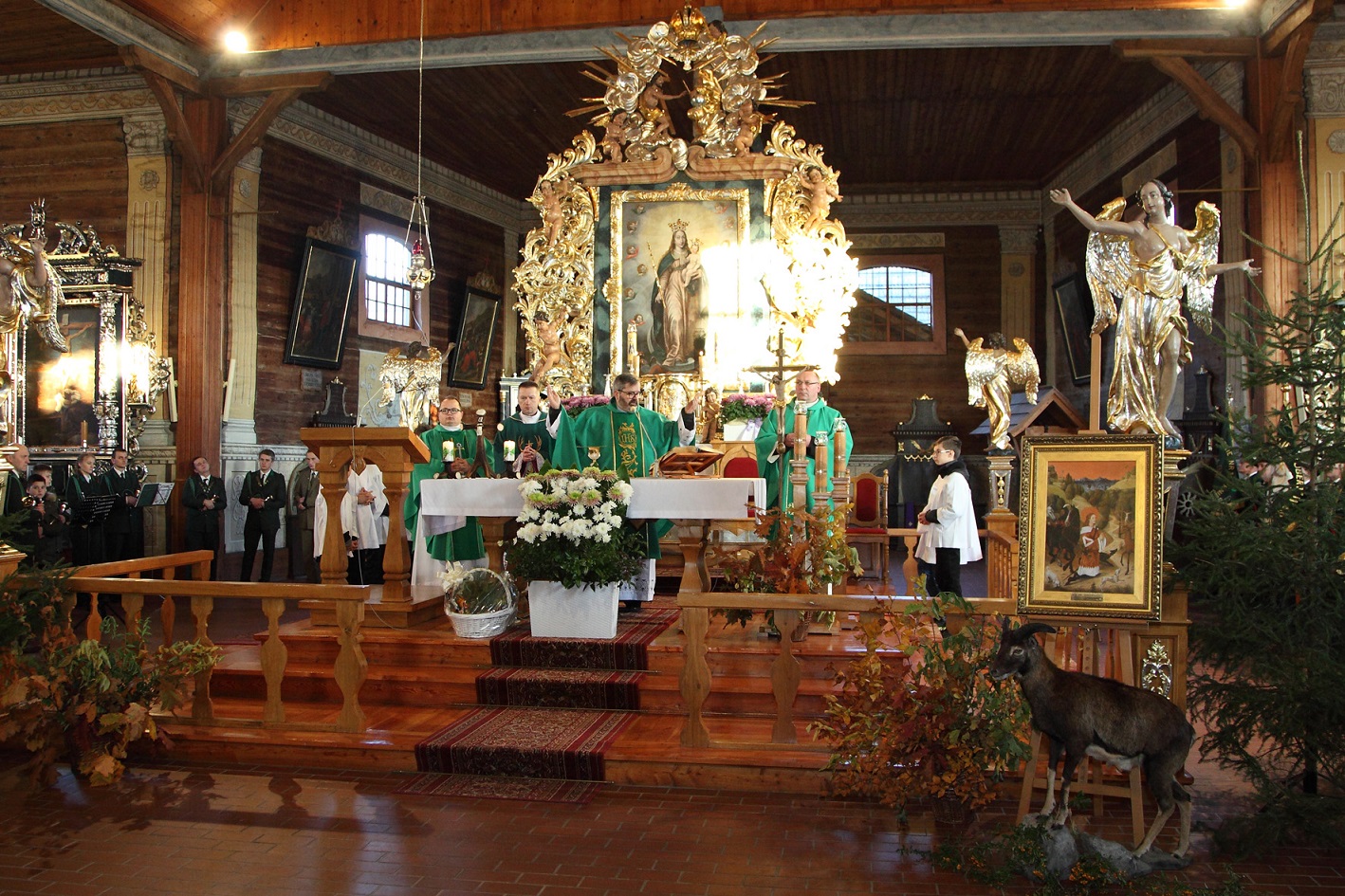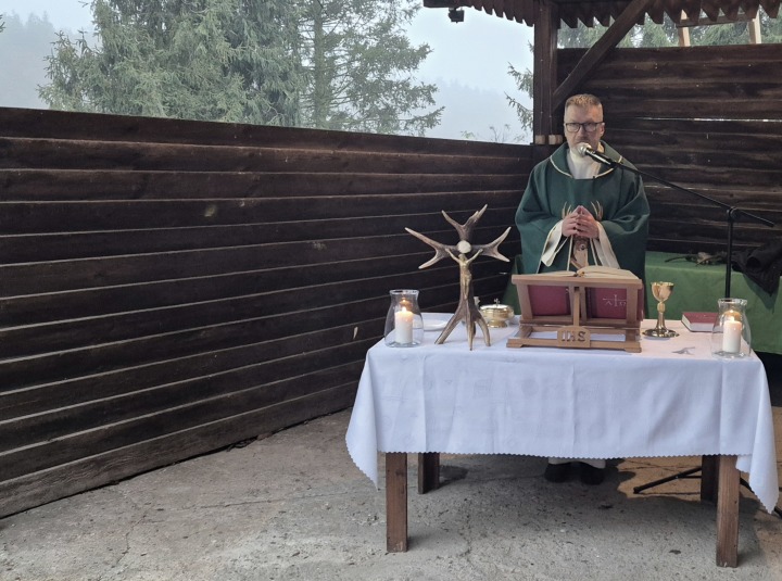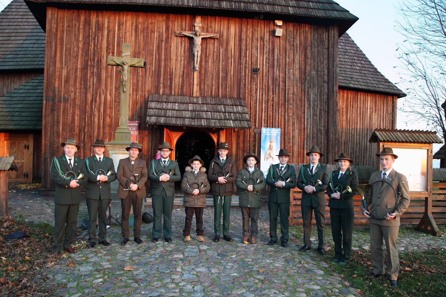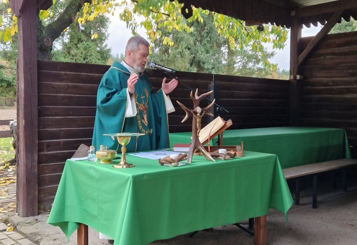 MSZA HUBERTOWSKA Z POŚWIĘCENIEM TABLICY UPAMIĘTNIAJĄCEJ ZMARŁYCH CZŁONKÓW KOŁA ŁOWIECKIEGO JELEN W RYCHTALU SPRAWOWANA NA SADYBIE O PORANKU 09.11.2024