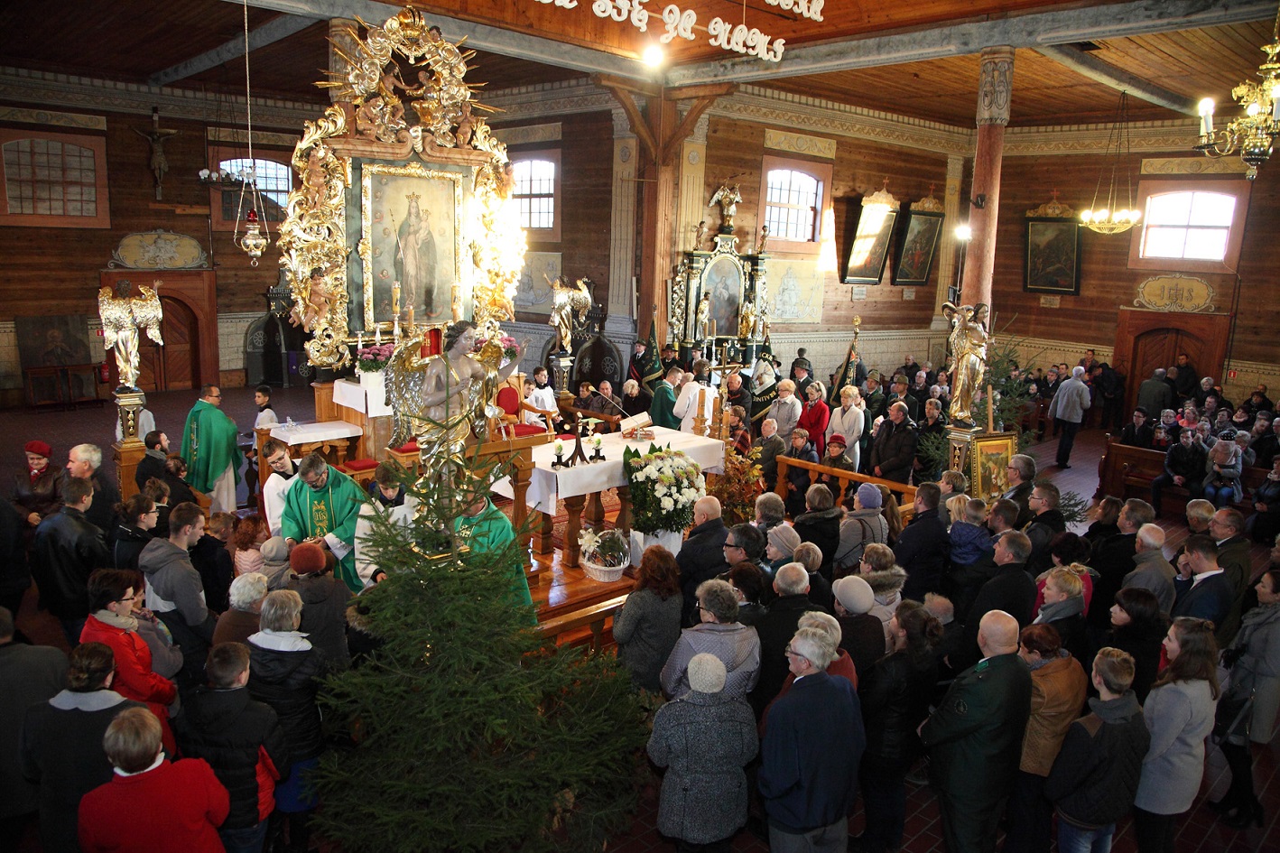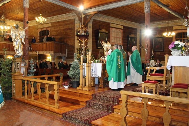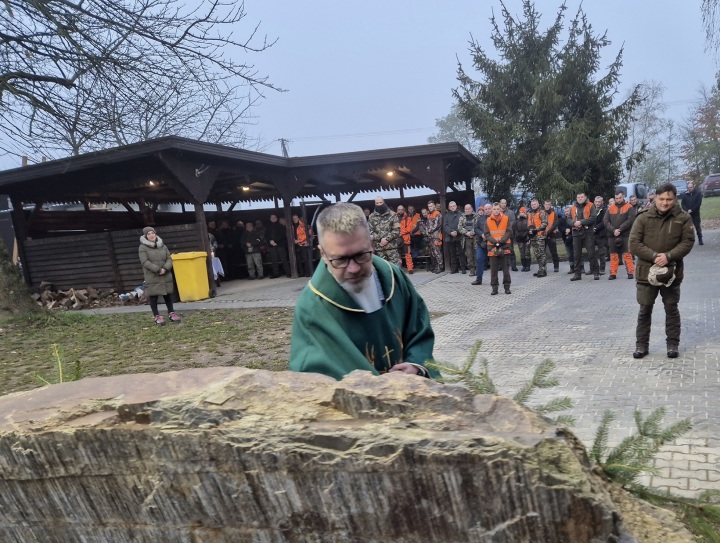 "Nas tu obecnych niech dotknie Boże błogosławieństwo a zmarłych członków Koła Łowieckiego Jeleń Rychtal za których się modlimy niech Bóg obdarzy pokojem w wieczności". Ks. kan. Mariusz Białobłocki