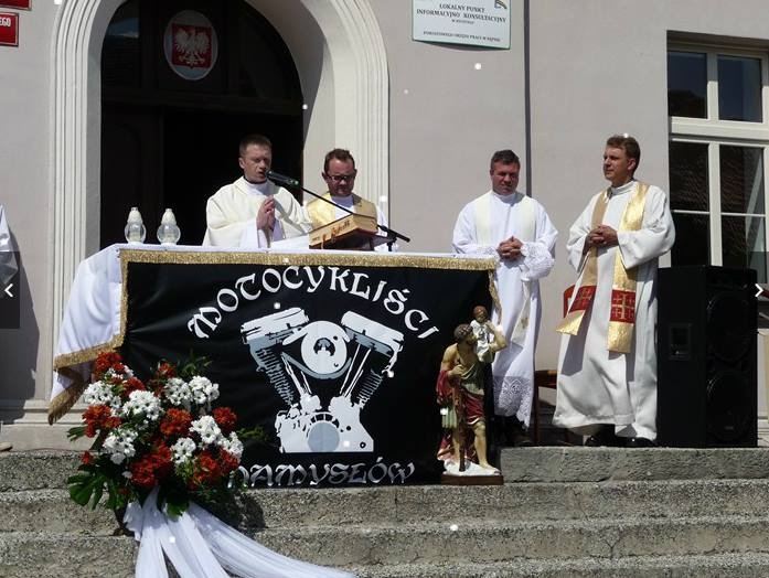 Moi drodzy! Jesteśmy tu dzisiaj wszyscy, bo każdego i każdą z nas jednoczy ta sama pasja. Mamy różne motocykle, jesteśmy w różnych klubach i stowarzyszeniach, niektórzy z nas jeżdżą indywidualnie ale wszyscy mamy jedną pasję o której możemy rozmawiać godzinami. Gdzie byśmy się nie spotkali, to mamy zawsze jeden temat. Moi drodzy! Czasami jednak jesteśmy trochę, jak te nasze ukochane motocykle, bo przychodzi czas, że sami potrzebujemy przeglądu technicznego. Potrzebujemy zjechania do warsztatu, do kogoś, kto powie co naszą duszę boli. I mimo, że wyglądamy na silnych i mocnych, zabezpieczonych na różne sytuacje, to dusza nasza nie jest przecież ze stali. Ona aż czasem krzyczy o pomoc. Zauważcie, że w tej dzisiejszej Ewangelii Jezus mówi o sobie jako o tym, który jest specjalistą od ludzkiej duszy. Mówi też o świętej zasadzie: Nie wyruszamy w drogę, jak nam się podoba. Zawsze jest porządek, zawsze jest hierarchia, zawsze jest prowadzący – pasterz i to on wyznacza kierunek. Ci którzy pasterza nie znają jeżdżą jak im się podoba. Jeżeli jednak jeździmy razem, to trzymamy się konkretnych zasad. I dokładnie tak samo jest w życiu. Jeżeli jesteśmy chrześcijanami, to podążamy przez życie za Jezusem, bo On jest naszym pasterzem, On nas prowadzi i On nas łączy. Różne są nasze życiowe drogi, tak jak różne są te, po których jeździmy ale warto czasami zadać sobie pytanie: Czy obecność pasterza, którym jest Jezus zmienia coś w moim życiu? Czy prawda o Jego zmartwychwstaniu, którą niedawno świętowaliśmy przemieniła mnie na tyle, że jestem w stanie przyznać się przed innymi, że jestem człowiekiem wierzącym, i nie wstydzę się pokazywać innym, że Jezus jest moim Pasterzem i idę za Nim?. Moi drodzy! Ta dzisiejsza Ewangelia ostrzega nas też przed fałszywymi przewodnikami, oszustami, którzy chcą nas sprowadzić na manowce. Kiedy jedziemy na motocyklu nie lubimy wiatru, zwłaszcza tego, który wieje z boku. Nie lubimy tego powiewu, który czasami rzuca nas na inny pas drogi. Szukajmy więc siły do mocnego trzymania kierownicy i bezpiecznej jazdy drogami naszego życia. Szukajmy jej u Chrystusa w Jego Słowie i w Eucharystii w której daje się nam jako pokarm na drogę do Nieba, gdzie co daj Boże będziemy wspólnie przemierzać po niebieskich autostradach. Amen