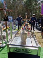 Moi drodzy! Dwa dni temu w niedzielę Kościół czytał Ewangelię o wskrzeszeniu Łazarza a dzisiaj św. pam. Dariusz staje przed nami w tej kaplicy jak ewangeliczny Łazarz, żeby zanim Jezus wskrzesi Go z powrotem do życia, opowiedzieć nam o prawdzie i prosić nas o modlitwę w swojej intencji. Być może po ludzku w okoliczności śmierci osoby bliskiej ta chrześcijańska nadzieja którą w tej niedzielnej Ewangelii wyraziła siostra Łazarza Marta słowami: „Wiem, że mój brat zmartwychwstanie w czasie zmartwychwstania umarłych”, wydawać się może marnym pocieszeniem ale co nam pozostaje, jeżeli nie właśnie ta nadzieja, że kiedyś po drugiej stronie życia spotkamy naszych bliskich i tak, jak możemy to usłyszeć w Apokalipsie: „Bóg otrze z naszych oczu wszelką łzę”. Moi drodzy! Jesteśmy dzisiaj tutaj wszyscy razem w tej kaplicy, żeby swoją wiarę w zmartwychwstanie umocnić, bo chcemy Darka pożegnać właśnie w taki sposób: z wiarą i nadzieją, że otrzyma on swoje miejsce w domu Ojca. Dlatego moi drodzy procesja z darami odbyła się tutaj tak naprawdę już wtedy, kiedy ta urna z jego prochami została wniesiona do tej kaplicy. To była procesja z darami, ponieważ chcemy dzisiaj całe jego życie położyć na tym ołtarzu w przekonaniu, że kładziemy na nim dar, który mimo, że jak my wszyscy nie był pozbawiony ludzkich słabości będzie przyjemny Bogu. Weź więc Panie Jezu życie naszego brata Dariusza na patenę i do środka Twojego kielicha, przemień je w swoje ciało i krew i jeszcze raz nakarm nas tym dobrem, które wniósł w nasze życie. Moi drodzy! Jest taka prawdziwa historia o ks. Józefie Tischnerze, który był w sytuacji dosyć podobnej do Darka, tylko inny organ był u niego zaatakowany przez raka. I przyszedł do niego przyjaciel i pewnie w dobrej wierze powiedział: Józefie cierpienie uszlachetnia. A wtedy ks. Józef Tischner poprosił o kartkę i długopis, bo nie mógł już wtedy wypowiedzieć ani słowa i napisał: Nie uszlachetnia. A potem na Boże Narodzenie 1999 roku napisał swój ostatni tekst zatytułowany: „Miłość”. I jest w nim takie zdanie: „Cierpienie nie uszlachetnia, tym co uszlachetnia i wznosi ku górze jest tylko miłość”. Myślę, że Darek to rozumiał, że jest choroba, która go niszczy i jest coś co daje siłę. Coś co wznosi ku górze. Ta miłość o której powiedział kiedyś św. Paweł, że powinna być naszą wierzchnią szatą, po której się rozpoznajemy. Dlatego też jest dzisiaj żal i smutek i dlatego że jest, to ta kaplica nie jest dzisiaj pusta. Bo żal jest taki, jak smutek a smutek jest taki, jak miłość. Jak jest mały smutek, to jest mała miłość. Ten smutek podsycają oczywiście rzeczy i wspomnienia. Zostają po człowieku buty i telefon głuchy - Jak napisał kiedyś ks. Jan Twardowski w swoim najbardziej znanym wierszu. Niestety jest dużo gorzej, bo nie zostają tylko buty i telefon głuchy. Zostają też wspomnienia: z dzieciństwa, z młodości, ze szkoły i z domu, z pracy w wojsku i wspomnienia ze wspólnych wyjazdów motocyklowych. Wspomnienia ostatnich życzeń, ostatnich westchnień i ostatniego spojrzenia. Z tym też trzeba sobie poradzić. Jest też w tym wierszu ks. Twardowskiego jedno zdanie trochę denerwujące, że wciąż kochamy za mało i stale za późno i z tego powodu, też robi się smutno, dlatego z tego pogrzebu wyciągnijmy też jakiś pożytek dla siebie. Bo pogrzeby są dla tych, którzy są a nie dla tych, którzy poszli. Może jest ciągle ktoś, kogo kocham za mało i stale za późno. W ogóle niech każdy wyciągnie sobie jakiś pożytek z tego pogrzebu i z tej śmierci. Darku! Bracie nie wiem czy tam w niebie mają dla Ciebie przygotowany motocykl. Powinni go mieć, bo jest napisane, że tam jest wszystko. Ale na pewno nie mają tam tych wszystkich raków, morfin, tych wszystkich zastrzyków, cewników, tam w ogóle nie mają choroby ani śmierci, tylko wieczność i życie więc powinno ci tam być w sumie lepiej nawet jeżeli tak wielu ludziom jest teraz gorzej…