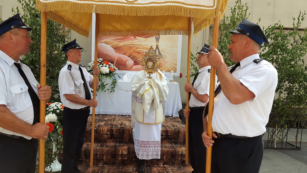 Drodzy strażacy! Wasze poświęcenie dla innych, często przecież obcych ludzi, wasze wyjazdy w dzień i w nocy do wypadków i pożarów, ratowanie dobytku innych od zalania wodą, wspólnie robione festyny sprawiają, że jesteście przez wielu, zwłaszcza tych, którym pomogliście w ich biedzie odbierani, jako ludzie dobrzy i wrażliwi na ludzkie potrzeby. Warto jednak dzisiaj w tej wspólnocie postawić sobie jedno ważne pytanie: Czy to dobro czynione w czasie służby, przekłada się też na osobiste, codzienne życie, kiedy jesteście z rodziną w domu, albo, gdy jesteście w pracy, wśród przyjaciół czy w szkole. Czy wtedy też widać tę waszą miłość do ludzi, wrażliwość na ich potrzeby, radość z życia i zbawienia, pokój wśród niepokoju tego świata?. Moi drodzy! Może kiedy ludzie patrzą dzisiaj na was z boku myślą, że wy strażacy jesteście jakąś jedną wielką rodziną, którą napędza wspólna pasja. Nie wiedzą jednak, że wasza grupa społeczna cechuje się dokładnie takimi samymi zasadami jak każda inna. Nie chcę tutaj używać zwrotu „prawdziwi strażacy”, bo nie ma czegoś takiego. Po prostu róbcie to, co lubicie nie psując przy tym opinii sobie i innym, którzy tak się składa, lubią robić to, co i wy. Szanujcie siebie nawzajem a inni będą szanować was. I nie zapominajcie też o tym, że Bóg patrzy na was każdego dnia i potrzebuje was do czynienia dobra w świecie w którym dobro czynione bezinteresownie jest często towarem deficytowym. Bo dopiero wtedy, kiedy świat wali się ludziom na głowę nagle uświadamiają sobie jak bardzo taka bezinteresowna pomoc jest w świecie potrzebna. Dlatego świat potrzebuje waszego przykładu, waszych talentów i waszych zdolności. Bóg chce też przez was czynić świat lepszym. Także tu w Jego Kościele każdy może odnaleźć siebie ze swoim powołaniem, ze swoją pasją, bo jakiekolwiek by one nie były, zawsze powinny być powołaniem do czynienia dobra. Jeżeli więc zaprosimy Jezusa do swojego życia, to możemy być pewni, że po śmierci, On też zaprosi nas do siebie. Amen