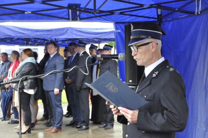 Sto lat, to szmat czasu. To czas naznaczony pokoleniami. To czas naznaczony czymś, co tak ogólnie nazywa się dobrem niesionym przez człowieka drugiemu człowiekowi. Bo przecież ratowanie mienia, życia ludzkiego, to jest wypełnianie tego najważniejszego przykazania o którym mówił Jezus, kiedy postawiono mu pytanie, jakie jest najważniejsze przykazanie. Powiedział prosto: „ Będziesz miłował Pana Boga swego z całego serca swego, z całej duszy swojej, ze wszystkich sił swoich a bliźniego swego jak siebie samego”. Służba drugiemu człowiekowi. Każdego roku, kiedy przychodzicie do tej świątyni, żeby uczcić swojego Patrona św. Floriana zawsze podkreślam jedną rzecz: Że to co robicie, to jest służba. Służenie drugiemu. Dzisiaj to jest bardzo rozszerzona służba. Przed stu laty strażak kojarzył się z ogniem a ewentualnie z wodą. A dzisiaj jesteście przy wszelkiego rodzaju ludzkich nieszczęściach i tragediach. Bo jesteście przeszkoleni na wszelką okoliczność. I gdzie by nie patrzeć, to pierwszy jest strażak ochotnik. Dlatego wszystkie badania opinii publicznej pokazują, że cieszycie się największym zaufaniem wśród ludzi. Moi drodzy! Gromadzi nas dzisiaj św. Florian, ten który wbił się jakoś w naszą polską tradycję i stał się przed wiekami również patronem strażaków. Święty Jan Paweł II były wikariusz w parafii św. Floriana w Krakowie w swoim liście przysłanym z okazji 800 - lecia tamtejszej parafii w 1984 roku tak pisał na temat znaczenia tego męczennika: „ Kościół w Polsce zanim wydał własnego świętego i męczennika św. Stanisława biskupa i uzyskał w nim swojego patrona opierał się niejako i rósł na dojrzałych owocach świętych Kościoła Powszechnego. Na świętych, których wydały inne narody. Ten, który poniósł męczeństwo, gdy śpieszył ze świadectwem wiary z pomocą i z pociechą prześladowanym chrześcijanom stał się pomocą i obroną w wielorakich niebezpieczeństwach, jakie zagrażają materialnemu i duchowemu dobru człowieka”. To tyle św. Jan Paweł II a jeden z pisarzy chrześcijańskich naszych czasów napisał, że „Pan Bóg nie odmawia nam świętych i daje nam ich w każdej epoce, żeby jak latarnie morskie wskazywali ludziom drogę unikania miernoty”. Przytaczam te słowa, żeby podkreślić, że strażak, to nie jest człowiek z przypadku. Tylko człowiek, który próbuje budować swoje życie na pewnych wartościach i zasadach. Bo św. Florian, który patronuje Waszej służbie jest przykładem wartości i poświęcenia, dania z siebie czegoś na rzecz drugiego człowieka. A nie jest to łatwe. Nie jest łatwo zrezygnować z czegoś co jest miłe, co jest dobre dla mnie, w moim mniemaniu na korzyść drugiego. Moi drodzy! Wieki przywódca Hindusów Mahatma Gandhi powiedział kiedyś: „ Nie będę się obawiał nikogo na świece. Będę się bał tylko Boga. Wobec nikogo nie będę miał złej woli, nie poddam się niesprawiedliwości obojętnie skąd by przyszła. Będę zwyciężał błąd przez poprawę a opierając się złu nie będę się uchylał przed żadnym cierpieniem”. To powiedział wielki przywódca Hindusów. A czym dla nas jest odwaga? Czy do niej potrzebna jest siła ciała? Czy może bardziej ducha? A może jedno i drugie, bo skąd ma pochodzić siła fizyczna jeżeli nie z siły ducha. I dlatego trzeba budować na tych wartościach począwszy od siebie, poprzez wspólnotę, którą się tworzy, bo skoro w tym waszym przypadku sprawdziło się to przez 100 lat, to wierzę, że sprawdzi się przez kolejne tyle i tego wam z całego serca życzę.