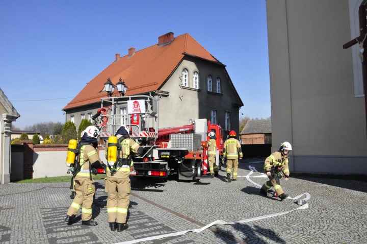 ĆWICZENIA SŁUŻB POŻARNICZYCH PRZY KOŚCIELE W RYCHTALU 2022