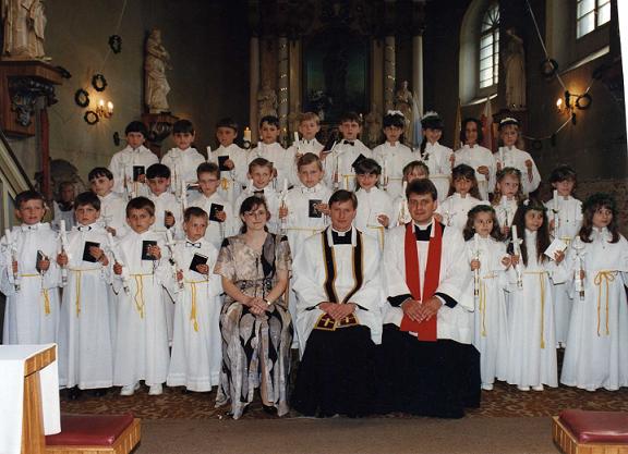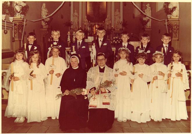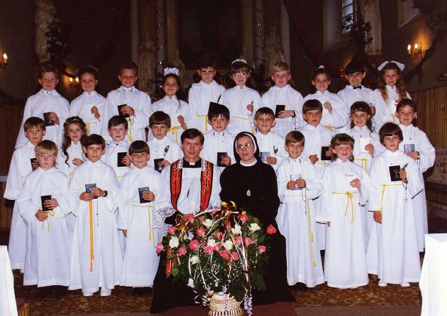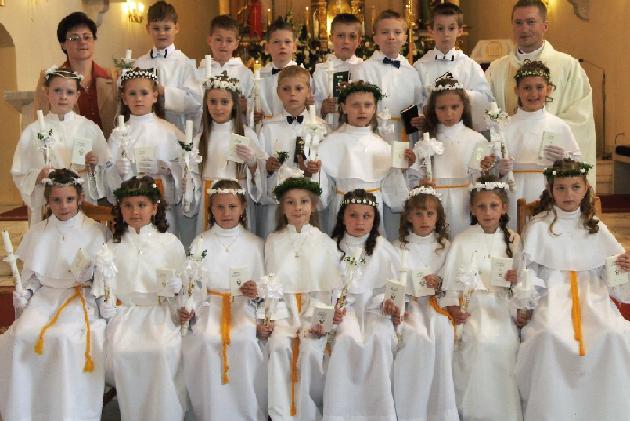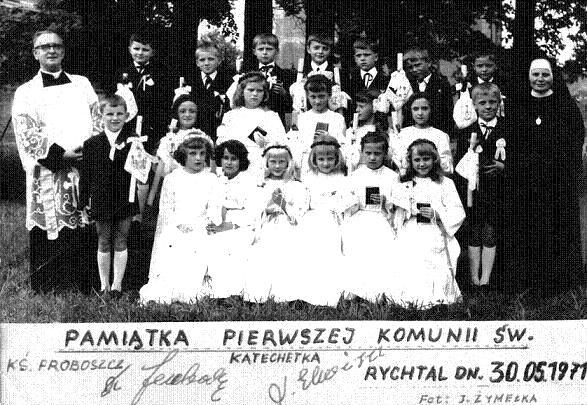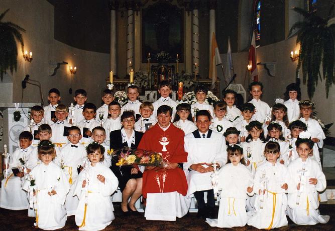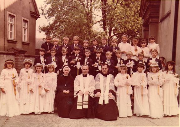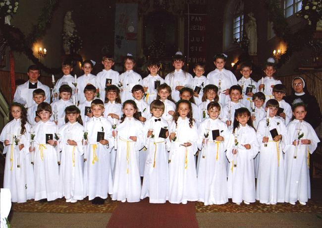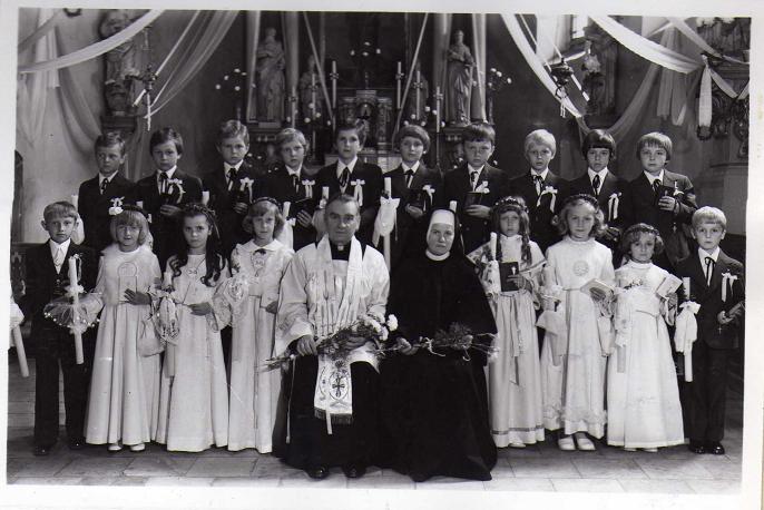Na stronie internetowej naszej parafii jest taka zakładka: „Dzieci I Komunijne w historii naszej parafii” I Na niej udało mi się zebrać zdjęcia z I Komunii Świętych w naszym kościele z 62 lat. I na tych zdjęciach niektórzy z Was mogą pewnie odnaleźć swoich rodziców, dziadków a może nawet pradziadków, którzy są dzisiaj świadkami tej ważniej chwili w Waszym życiu.
