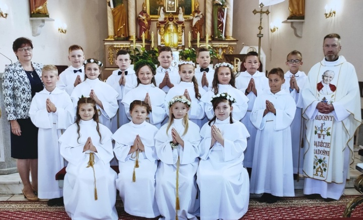 Kazanie do dzieci podczas I Komunii Świętej wygłoszone przez ks. kan. Mariusza Białobłockiego 19.05.2024