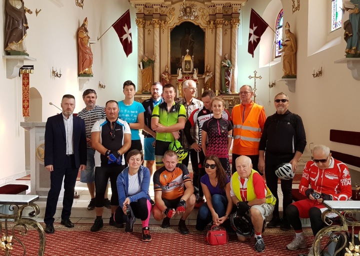 UCZESTNICY RAJDU ROWEROWEGO ŚLĄSKO - WIELKOPOLSKIM POGRANICZEM 15.09.2019 W RYCHTALSKIM KOŚCIELE